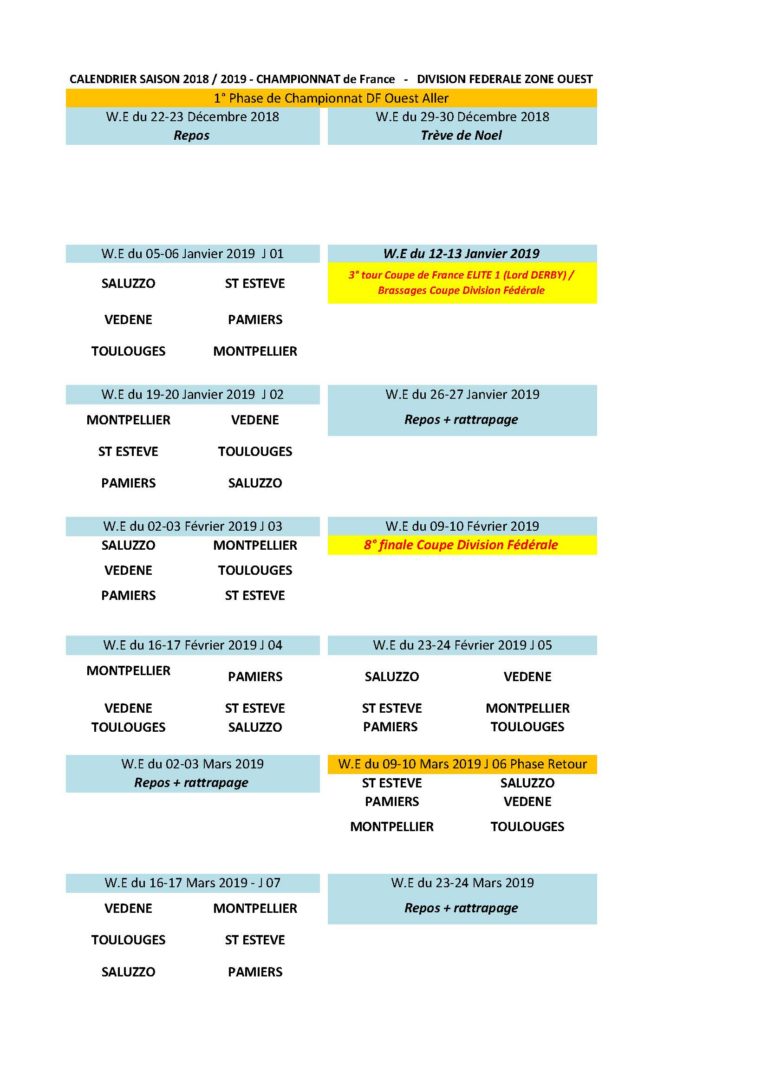 Suite à la note diffusée le 18 novembre 2018, la commission des compétitions vous informe de la qualification en phase finale pour