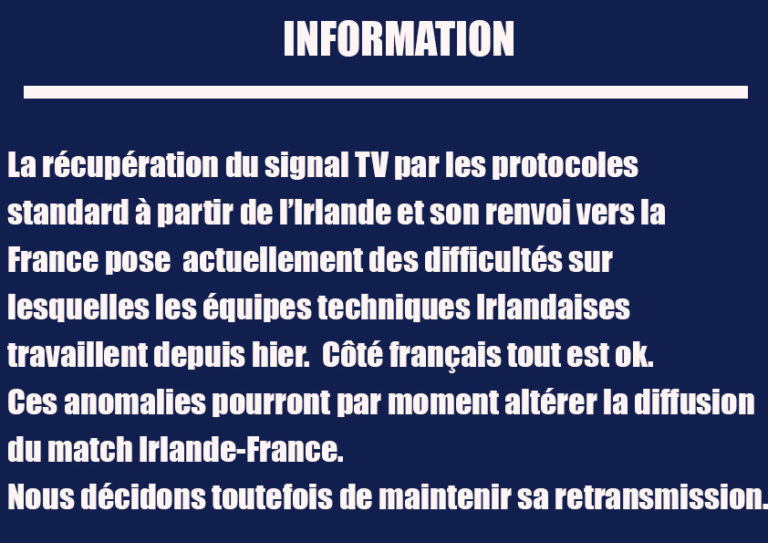 INFORMATION: La récupération du signal TV par les protocoles standard à partir de l’Irlande et son renvoi vers la France pose actuellement