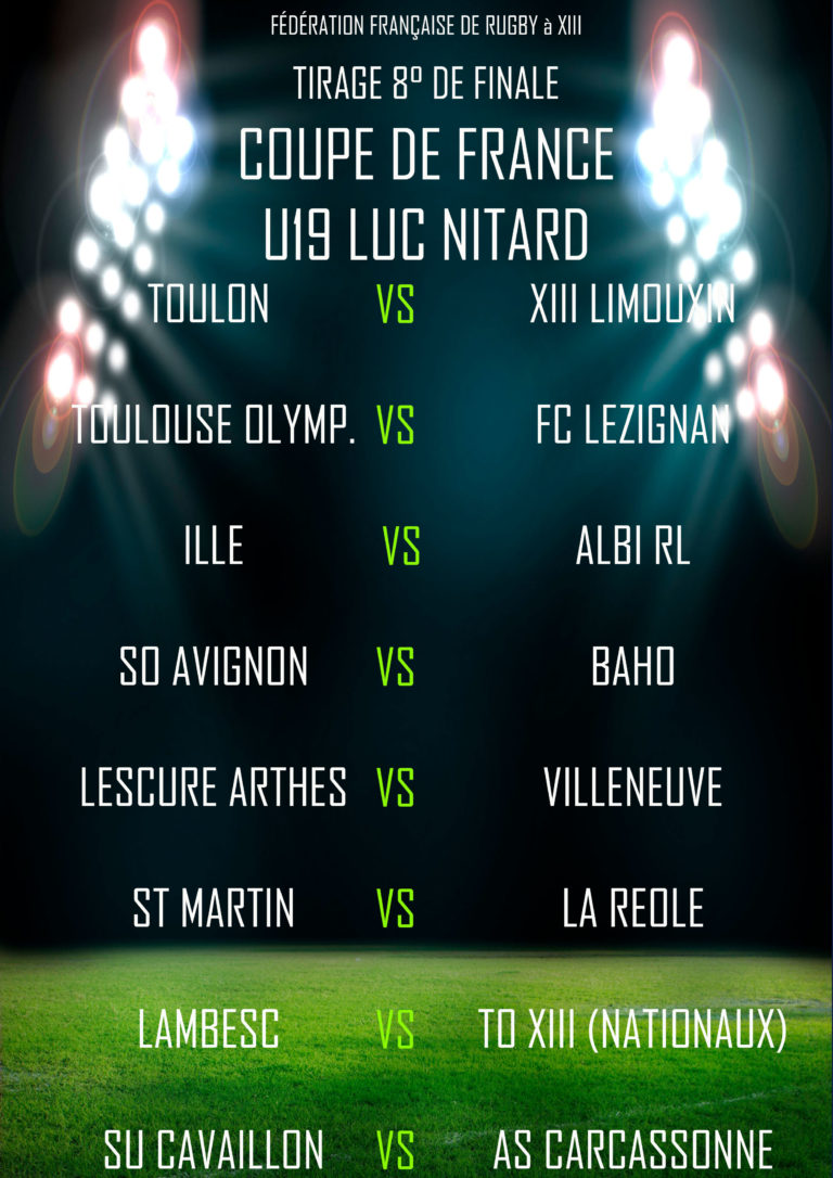 ???? #COUPEDEFRANCE #FFRXIII #LORDDERBY Samedi 27 janvier, tirage des 8ème de Finales de la Coupe de France Lord DERBY. Résultats du tirage