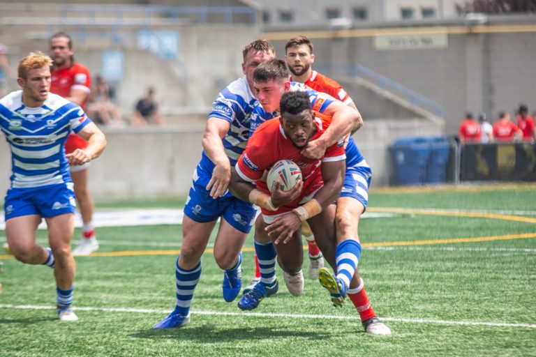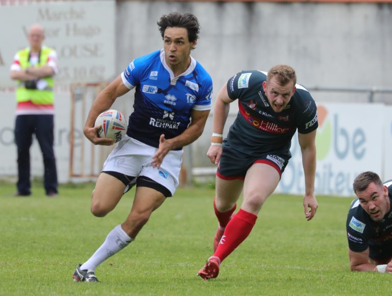 Sur le terrain de Widnes, où Patrick Ah Van, récent finaliste du championnat de France Elite 2 avec Villegailhenc-Aragon, a inscrit un