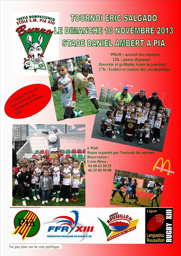 Tournoi Salgado : 10 novembre 27/09/2013 11:10 L’école de rugby SMPIA13-TREFLE BOMPASSENCQ13 à le plaisir de vous inviter à son tournoi annuel qui se déroulera sur les terrains honneur Lire la suite »